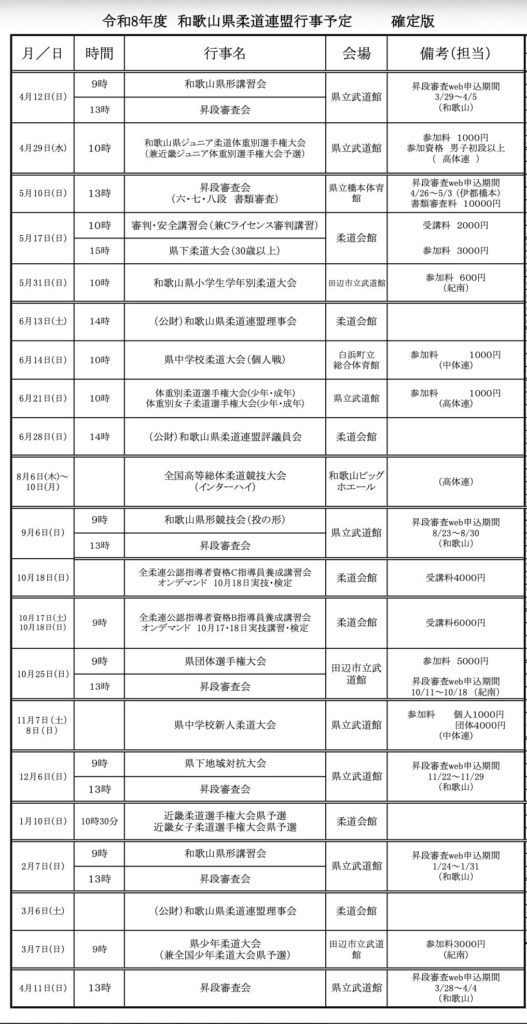 ※各昇段審査会の申し込みフォームは年間予定の下にあります。